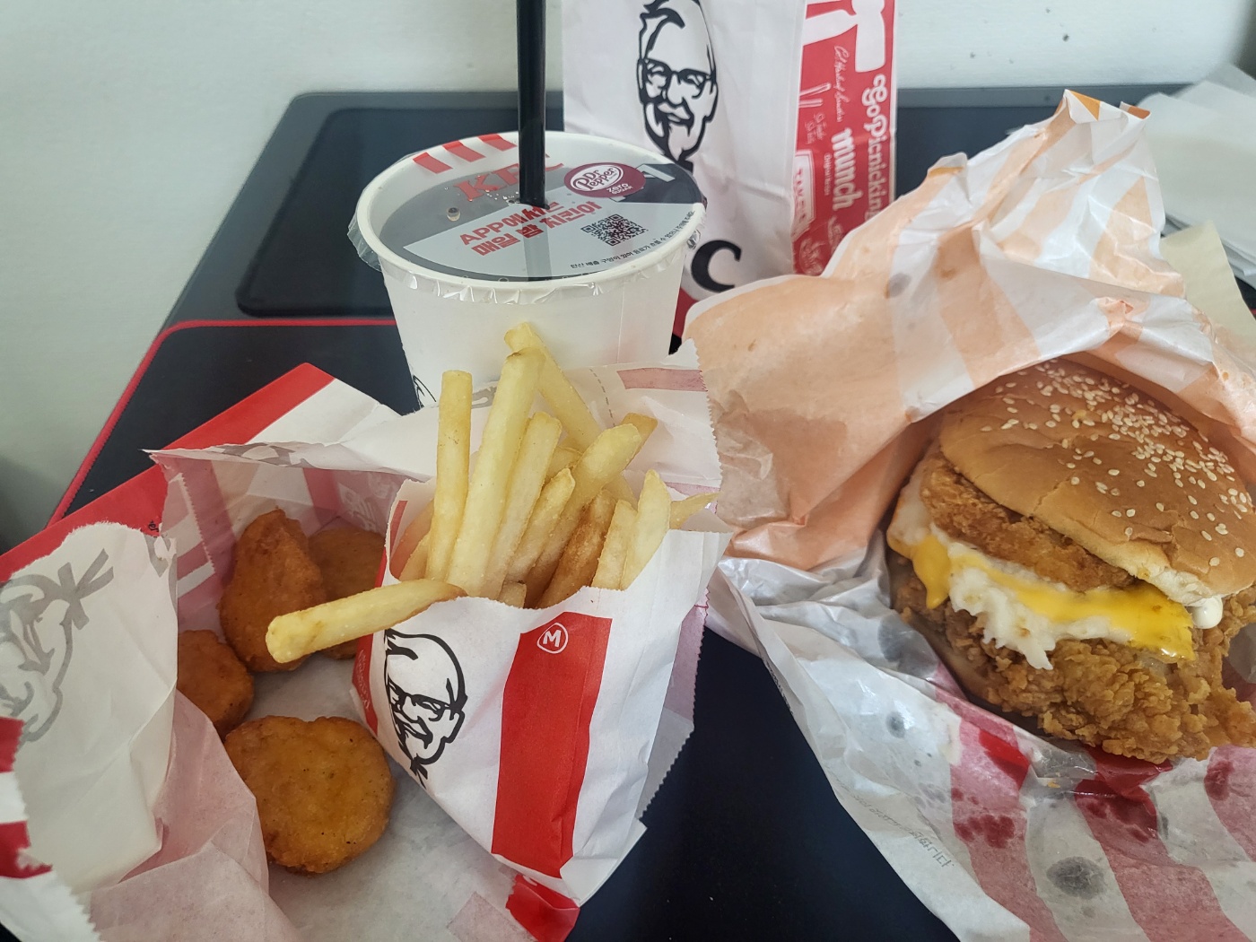 그래도 새로운 경험이었고, KFC도 이런 메뉴를 만들 수 있다는 걸 알게 돼서 좋았어! 다음엔 좀 더 가벼운 메뉴로 도전해봐야겠어~ 😊